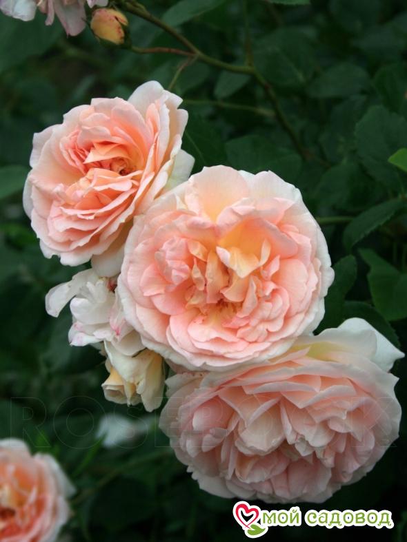 Роза Андре Тюрка Романтическая роза посвящена прославившемуся на весь мир лётчику-испытателю. Андре Тюрка первым поднял в воздух сверхзвуковой самолёт Конкорд. Очевидно что селекционер хотел подчеркнуть смелость и инновационность сорта. Выведен он в 2002 году во Франции, а в 2007 году представлен миру домом Массад. Ботаническое описание Роза Андре Тюрка сразу же привлекает взгляд прохожих своей окраской. Это сложное сочетание из розового, жёлтого и оранжевого цветов. Цветок яркий, но не кричащий. Постепенно лепестки выгорают на солнце и блекнут, но при этом каждый раскрывшийся бутон держится 1 – 2 недели. Сами по себе цветки крупные (диаметром 9 – 15 см), старинной зонтиковидной и слегка приплюснутой формы, с закрытой серединкой. Они состоят из 60 и более лепестков, сильно густомахровые, размещённые вокруг изящной пуговки. Формируются цветки на прямых и мощных побегах. Все бутоны собраны в кистевидных соцветиях по 5 – 10 штук. Раскрываются они поэтапно, благодаря чему цветение обильное и непрерывное. Роза Андре Тюрка источает душистый аромат средней интенсивности. Листва тёмно-зелёной окраски, с глянцевой поверхностью. Саженцы вырастают довольно крупными – 90 – 120 см в ширину и около 150 см в высоту. Применение Представленный на фото каталога сорт гармонично смотрится как в групповых, так и в сольных посадках. Рассаду можно высаживать в сочетании с разными декоративными растениями. Она хорошо себя чувствует рядом с перголами, заграждениями или бордюрами. Также низкорослый шраб поможет скрыть оголённую часть высокорослых кустарниковых роз. Достаточно разместить его впереди этих растений. Цветы Андре Тюрка выращивают и для срезки. Агротехника Посадка выращенных в питомнике саженцев осуществляется в прогретую землю, в заранее подготовленную ямку, выстланную слоем перегноя или навоза. При этом важно следить, чтобы место прививки располагалось ниже уровня грунта. Оптимальное расстояние между кустиками – 0,5 – 2 м (в зависимости от ширины кроны). Обычно на 1 м2 участка размещают 2 – 3 растения. Вокруг них можно сделать невысокую насыпь. Через несколько недель её можно разровнять. Уход за сортом Андре Тюрка заключается в своевременном поливе. Эта роза чувствительна к нехватке влаги: рост стеблей может замедлиться, бутоны станут мелкими и поникнут, а листва осыплется. В засушливый период саженцам нужен как минимум один полив в неделю. Расход воды – 1 ведро на 1 куст. Нужно следить за тем, чтобы жидкость не попадала на листья. Это приведёт к развитию болезней. После полива землю в прикорневой зоне рыхлят и мульчируют. Подкармливают растение комплексными минеральными удобрениями. Подстригают не слишком коротко. Рассматриваемая культура устойчива ко многим болезным и вредителям. Тем не менее, при неправильной агротехнике есть риск нападения тли и листовёртки. Против тли эффективен водный раствор хозяйственного мыла. Листовёртку можно собирать руками. При массовом поражении зелёной массы потребуется обработка пестицидами. Для профилактики грибковых заболеваний нужно опрыскивать шраб железным или медным купоросом. Хотя зимостойкость у Андре Тюрка выше, нежели у флорибунд и чайно-гибридных сортов, укрывать молодую рассаду на зиму всё же необходимо. Для этого используют еловый лапник или искусственный теплоизоляционный материал типа а